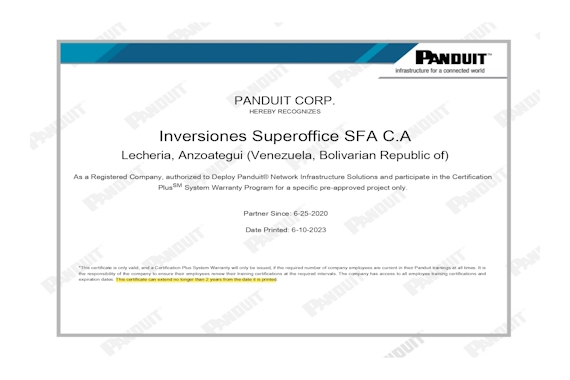 Canal Integrador Certificado y autorizado para diseñar e instalar sistemas de cableado estructurado de Panduit y como participante en el programa de Garantías de Certificación Plus.